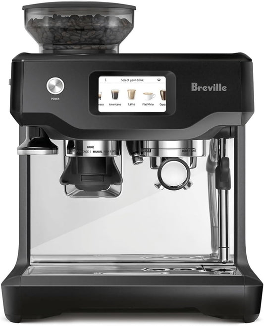 Cafetera automática con pantalla táctil, molinillo y espumador de leche