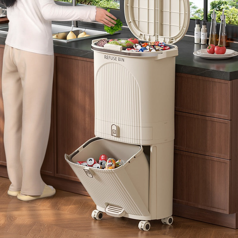 Dos compartimentos independientes permiten clasificar residuos fácilmente. Evita mezclas, reduce olores y facilita el reciclaje.