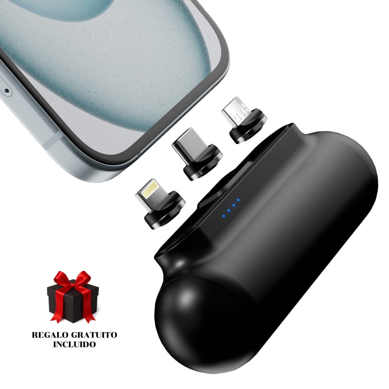 3 opciones de carga: apple COMPATIBLE, USB-C y MICRO USB