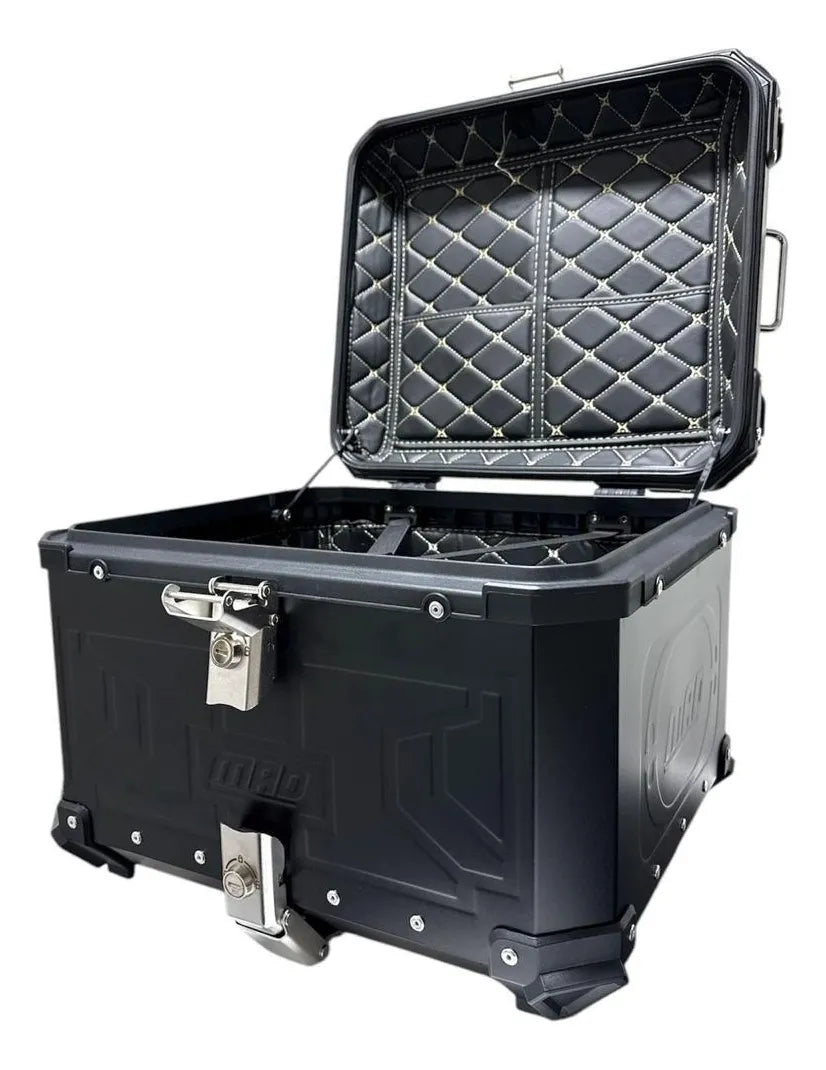 MotoVault™ es el maletero que acompaña tus recorridos con la robustez que exige la ruta. Fabricado en aluminio de 0.06 mm de grosor, ofrece una estructura resistente al clima, los golpes y el desgaste. Su interior forrado en cuero brinda un toque premium, mientras que su sistema de doble chapa y llaves asegura tus pertenencias en todo momento. Ideal para motos con parrilla, incluye todo lo necesario para una instalación rápida y segura.