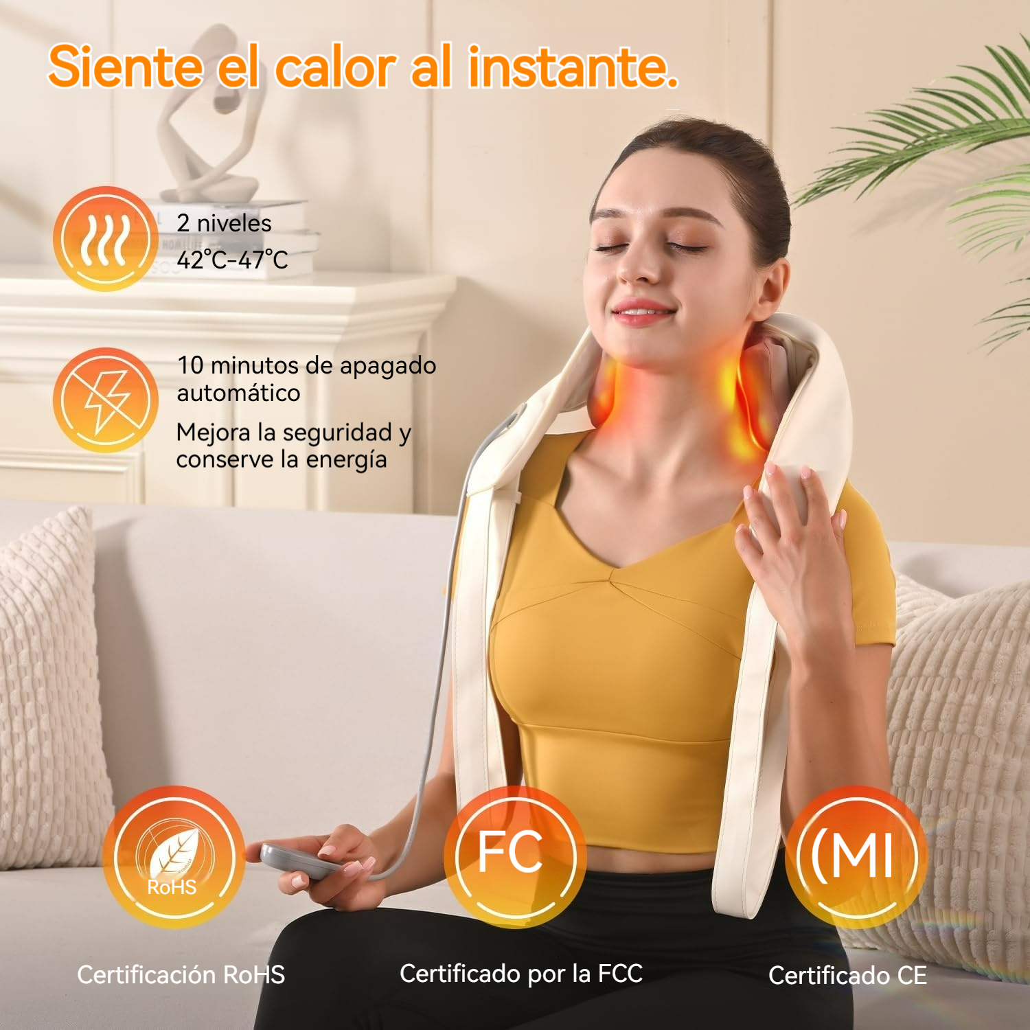 • Tecnología de amasado 4D Shiatsu: imita el masaje manual, aliviando fatiga y rigidez cervical