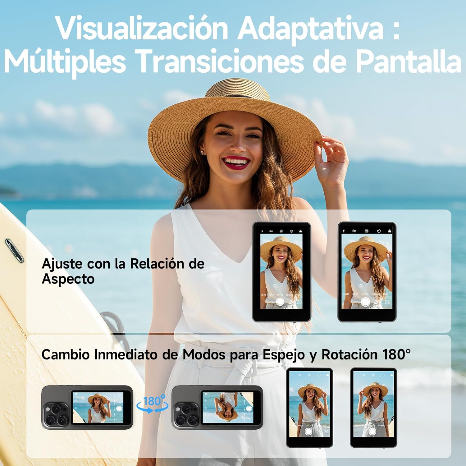 Lleva tus grabaciones y transmisiones en vivo a una dimensión profesional con el Rollei Easy Creator Selfie Monitor. Diseñado especialmente para creadores de contenido, vloggers y streamers, este monitor externo magnético es la herramienta esencial para capturar siempre tu mejor ángulo, ya sea con iPhone o Android.