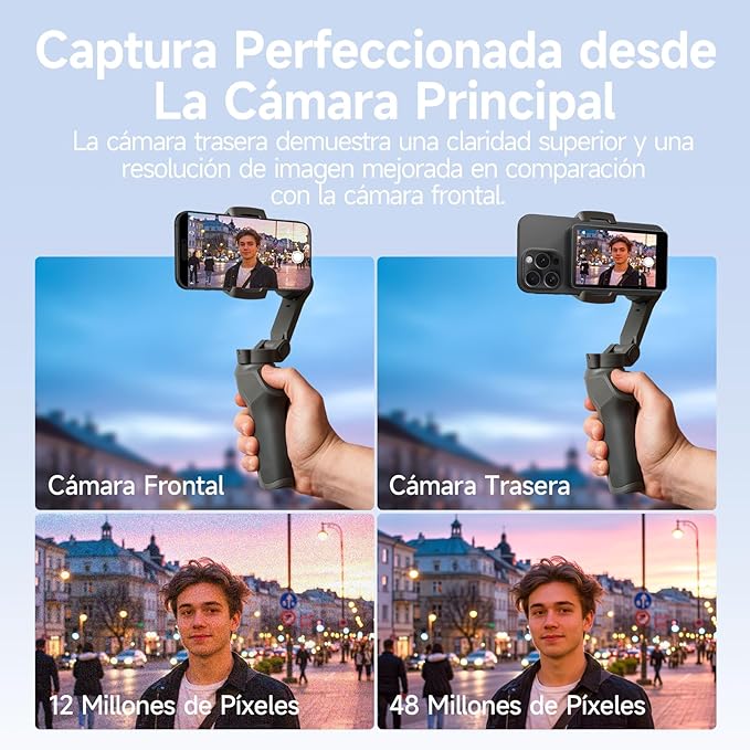Gracias a su pantalla de 3,97 pulgadas, puedes verte a ti mismo mientras grabas con la cámara trasera de tu móvil, aprovechando la máxima calidad sin perder control sobre el encuadre.
