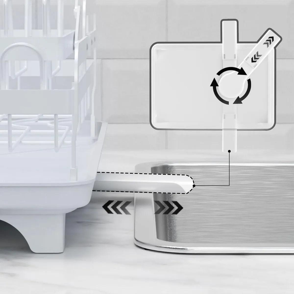 La bandeja inferior recoge el agua sin derrames. Mantiene la encimera seca y libre de humedad.