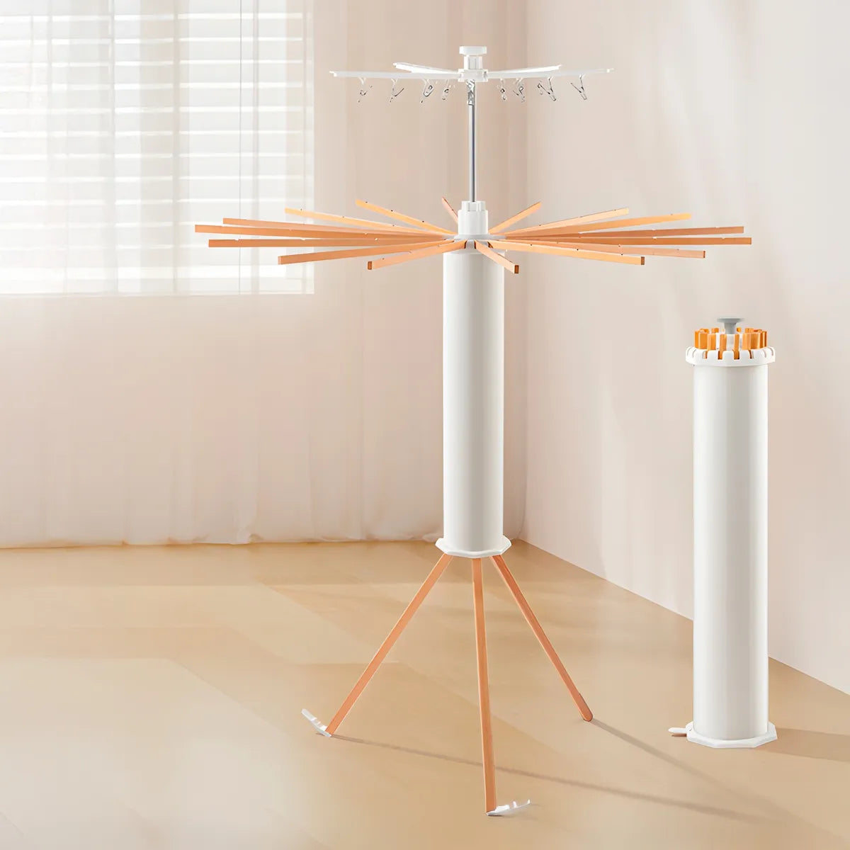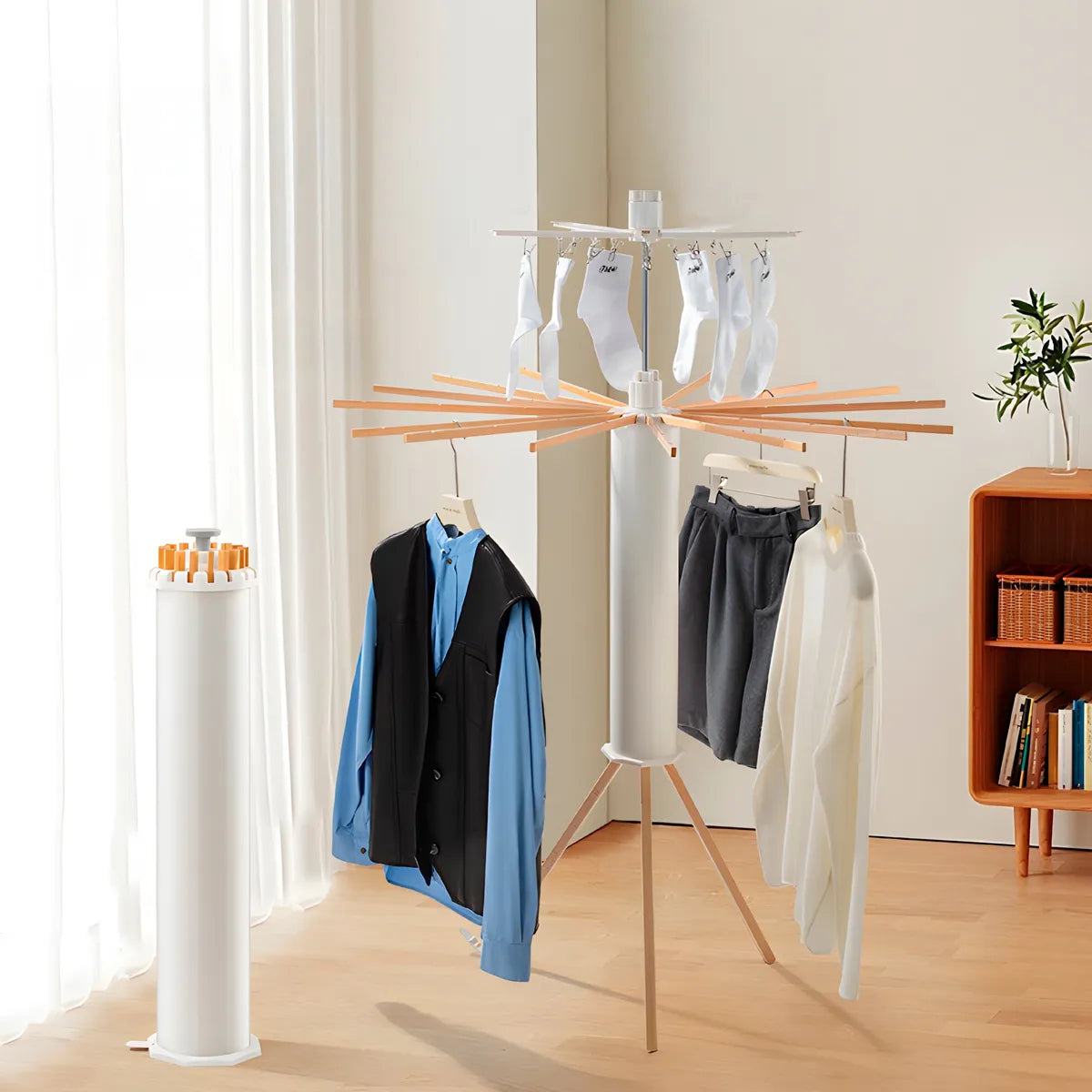 Este tendedero no es solo un perchero. Es una solución vertical, plegable y protectora que permite secar hasta 16 prendas simultáneamente sin ocupar superficie horizontal. Con estructura cilíndrica, cubierta anti-polvo y varas distribuidas en 360°, convierte cualquier rincón en tu zona de secado eficiente.