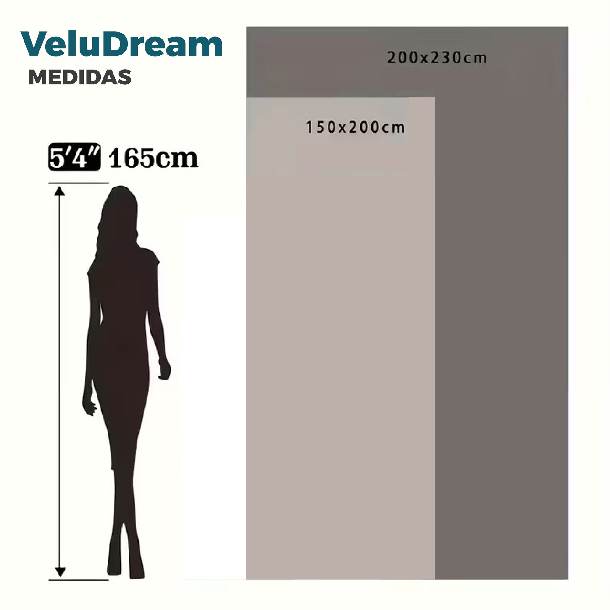 La manta VeluDream™ está diseñada con fibras de poliéster aterciopeladas que conservan su suavidad aterciopelada incluso después de repetidos lavados, asegurando siempre una experiencia premium.